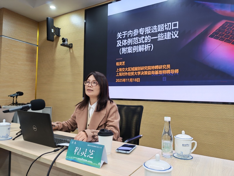 工作坊邀请了上海交通大学区域国别研究院特聘研究员、上海对外经贸大学决策咨询基地特聘导师程灵芝做专题讲座及个性化指导。
